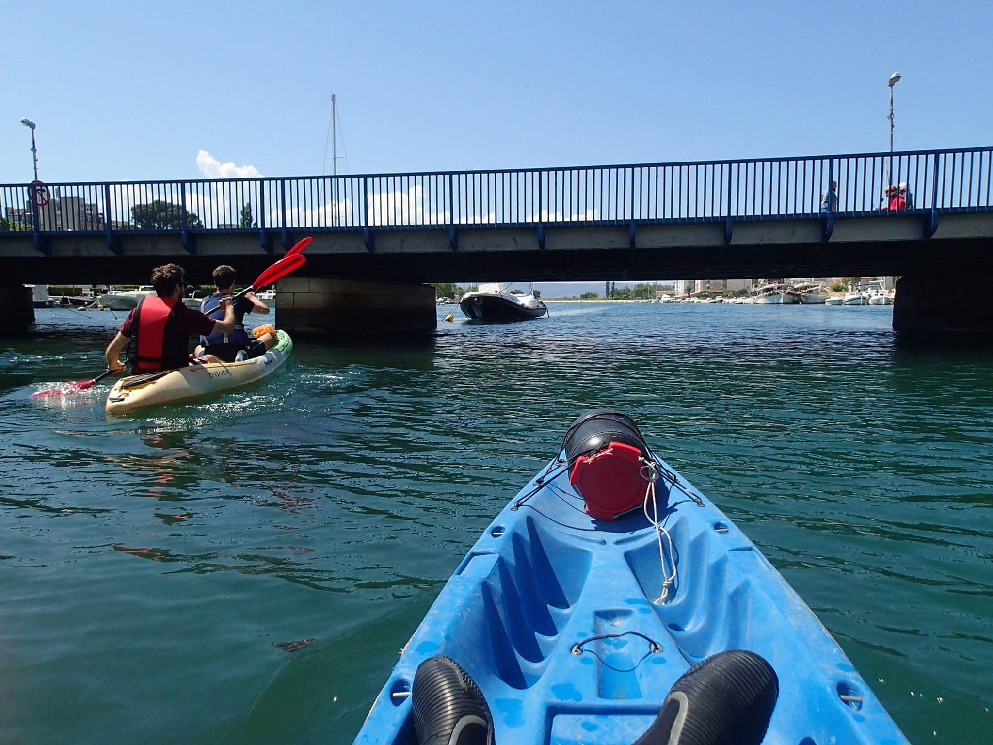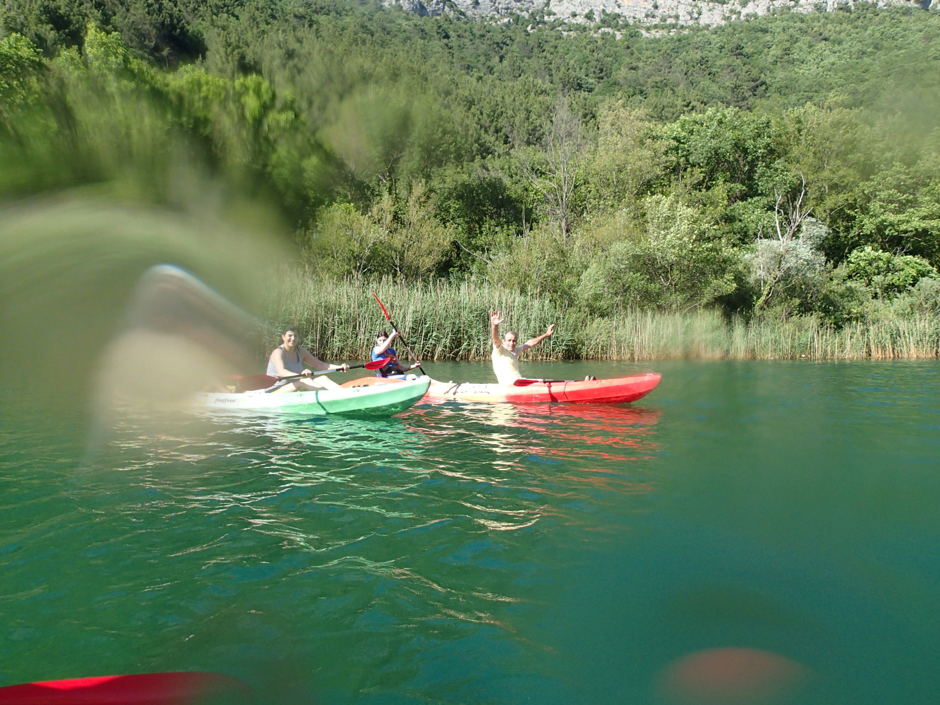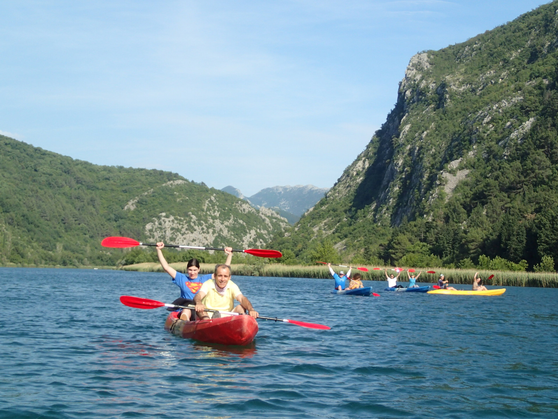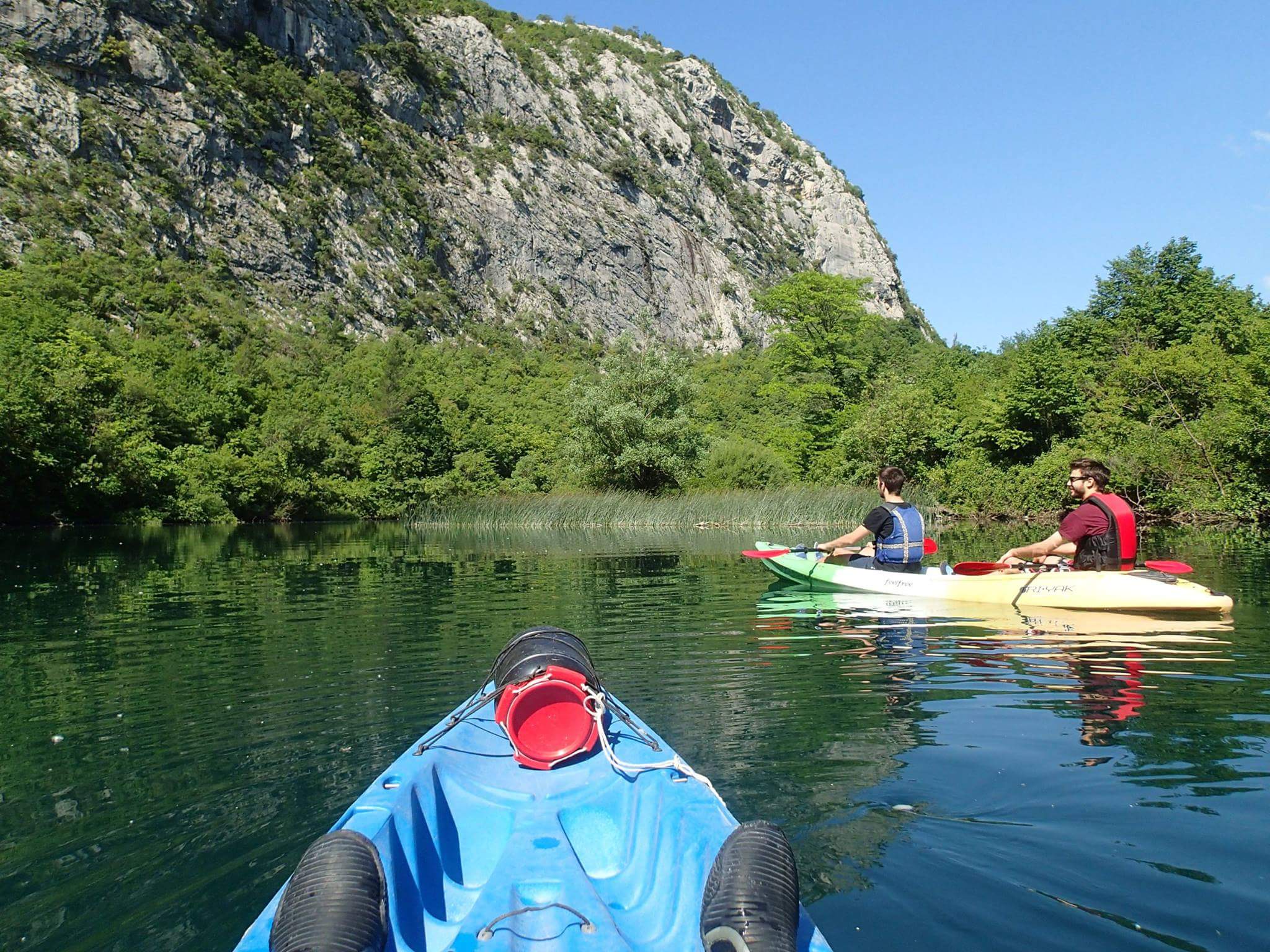 Kayaking on the Cetina river in Dalmatia Croatia. Rarely do you get to experience the tranquility and beauty of a crystal clear river- only a few kilometers from the sparkling adriatic sea. On this kayaking tour you will be taken from Omis by our mini bus, 6 kms inland to a beautiful restaurant and picnic area- Radmanove Mlinice. From Radmanove Mlinice you will kayak down river on the calm crystal clear Cetina River. Your kayaking guide will lead the way and give you advice on the best paddling techniques. You will set the pace and be able to kayak as fast or slow as you like. It usually takes about 2 hours to kayak the 6 kms to the mouth of the Cetina river in Omis. Once you get to the sea, kayaking finishes at the main beach in Omis. You must book your kayaking tour at least 1-3 day in advance.